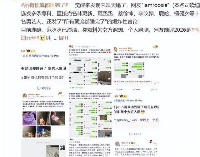 她的爆料逻辑很直接:用极具冲击力的文字定调,再配上经过马赛克处理的“证据”佐证。 她宣称自己30岁前已睡遍内娱顶流,还对名单中的男星进行了“个性化标注”。