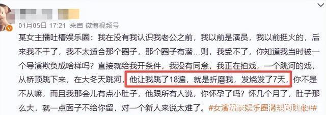 一位曾混迹影视圈的女主播就透露,自己因为拒绝了导演的“潜规则要求”,遭到了剧组的针对性折磨。 大冬天拍跳河戏份,导演故意让她拍十八遍,还散播她“怀孕”谣言,撕碎她的尊严。